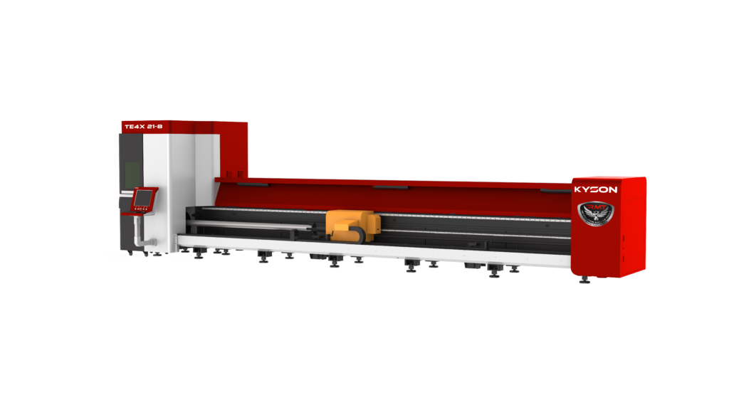 RMT KYSON series tube cutting fiber lasers aren’t designed for small ornamental work—though they can easily perform that too—they are made for large jobs. Current models can handle workpieces over 20′ in length with diameters of up to 8 or even 10″ in round tube.