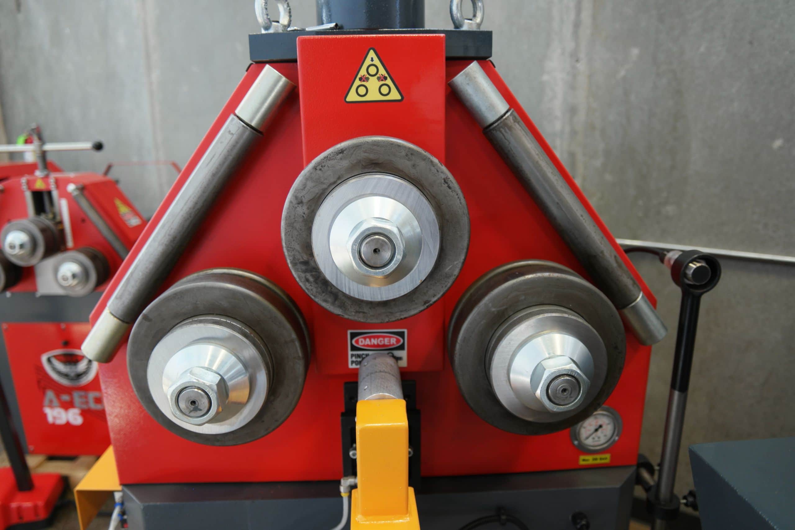 These small initial pinch rolls are designed for small part bending with low operation cost. R-ECO rolls feature robust cast iron frames, chain and gear driven drive systems and electric motors with a magnetic break which eliminates drifting. They also offer foot pedals with forward, reverse, and E-stop along with a safety wire and limit switch. A very economical, reliable, and efficient choice for your small parts needs.
