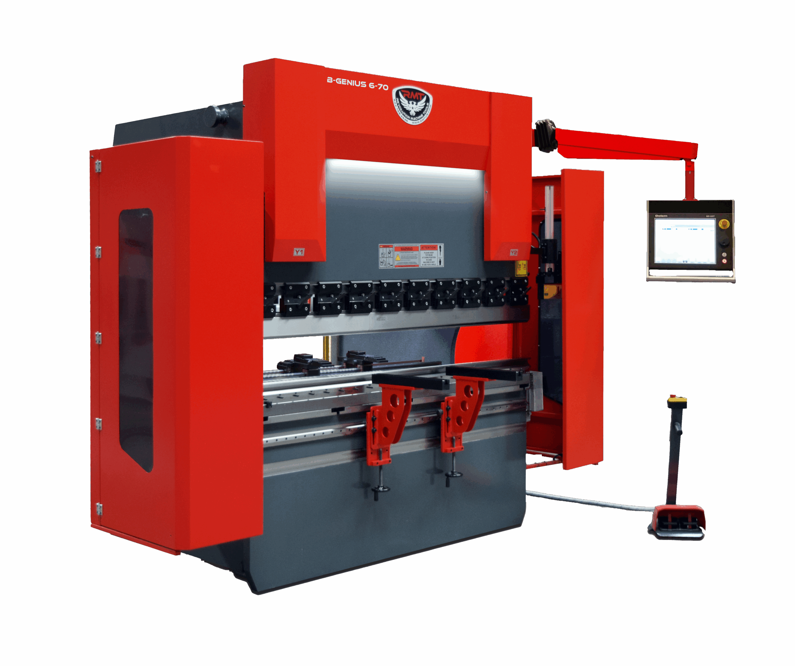 New RMT B-GENIUS 6′ x 70 Ton precision 7 axis CNC (Y1,Y2,X,R,Z1,Z2, with CNC Crowning ) hydraulic press brake – Engineered in the USA