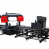 The Revolution Machine Tools™ S-SMART™ CDMS 18-25 NC Automatic Column Type Double Miter Bandsaw cutting capacity is 17.3 x 25.2” and projected for fast cuttings straight or with angle. Sensitivity of the machine lets cutting with percentage angles. The saw has automatic control system and open to future developments. Rollers on the table are designed for easy movement of the materials on machine. Hydraulic equipment on fixed and moveable guide arms controls cutting speed for a more smooth cut. Blade is under control mechanically switch system. Design of the machine and movement of the upper body and guide arms controlled by sensitive linear guides supply the operator an easier use.